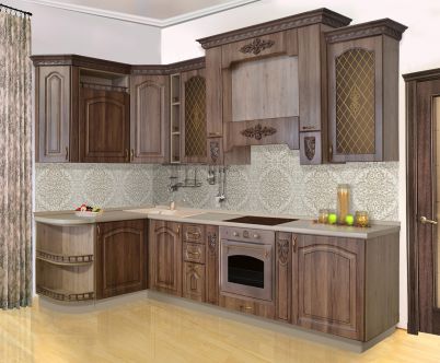 Описание: Фасады изготовлены из МДФ, облицованы пленками ПВХ с отделкой патинированием