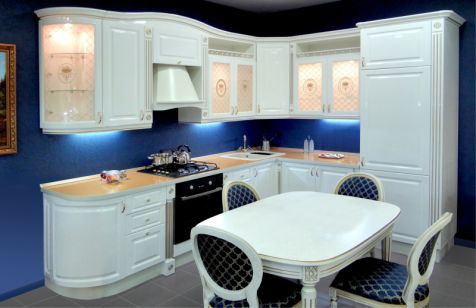 Даже небольшое пространство станет просторнее и больше с новинкой от салона кухонь «Эвита» ! Кухня «Марина» – мечта любой хозяйки. Элегантность цвета «металлик» различных оттенков подарит ощущение неограниченности пространства, энергии и свободы действий. Благодаря продуманному функциональному и эргономичному размещению секций, кухня станет отличной помощницей хозяйке. Фасад - МДФ, покрытый эмалью с флиттер-эффектом (металлик), декоративная отделка с позолотой. Цветовая гамма: белый металлик, зелёный металик, слоновая кость металлик.