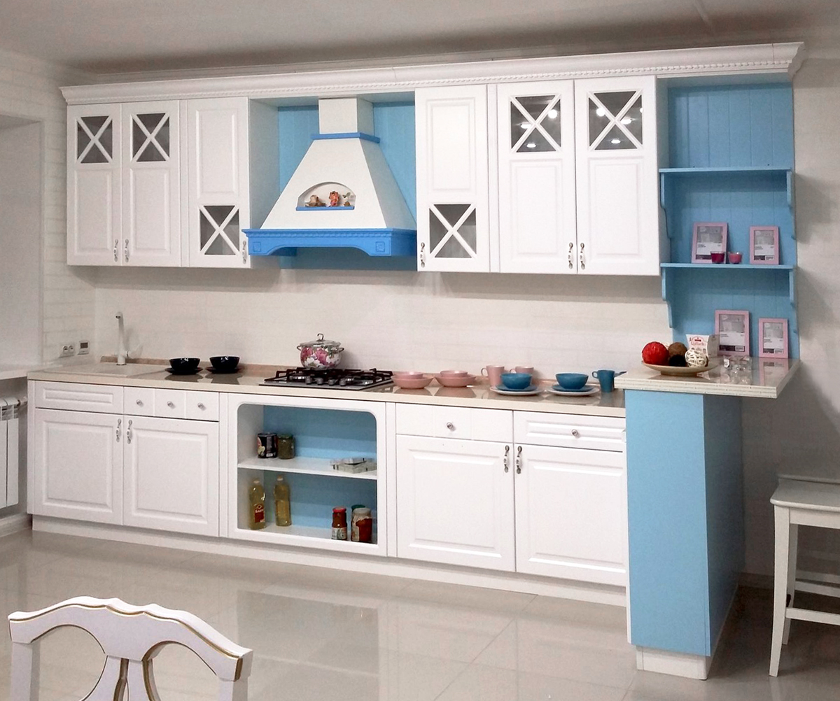 Фасад этой модели изготавливается из МДФ с фрезеровкой по пласти, окрашивается эмалью.