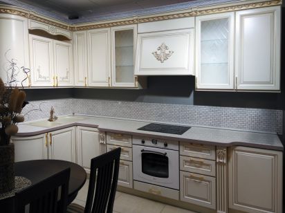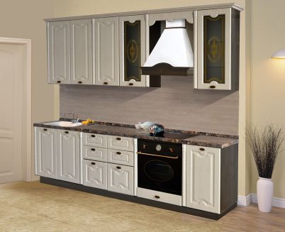 Описание: Фасады этой модели из МДФ, имеют рамочную конструкцию. Толщина фасада 22 мм. Фасад окрашивается с 2-х сторон эмалями в глянцевом или матовом исполнении по выбору покупателя, или с нанесением патины.