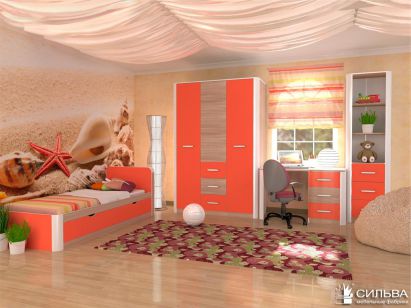 Фасад: ЛДСП Коралл/ЛДСП Ясень Шимо Светлый
