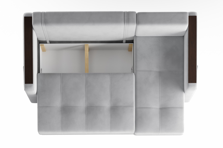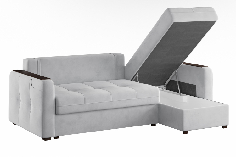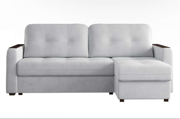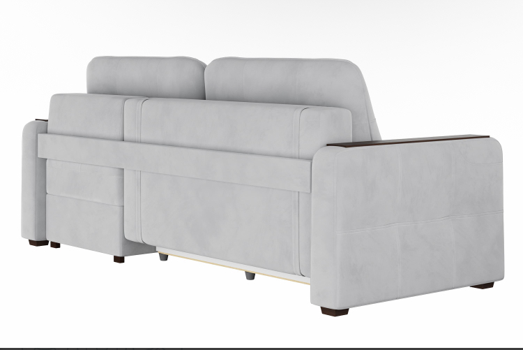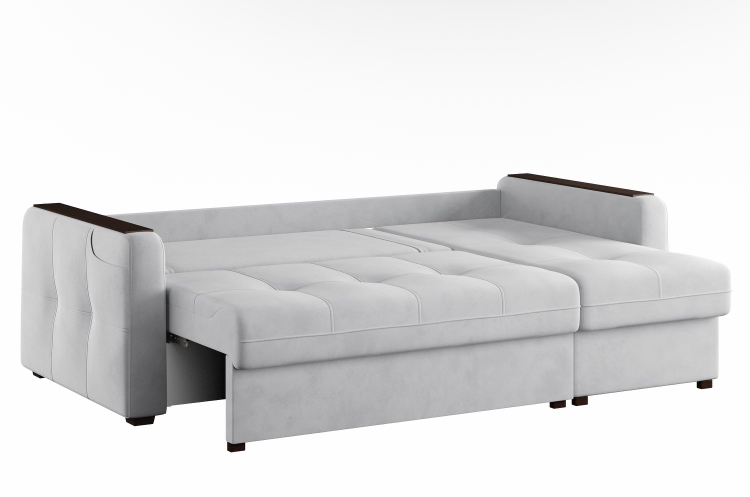 Удобный механизм раскладывания "пантограф" не требует отодвигания дивана от стены и работает из стационарного положения дивана. Боковины оснащены накладками, что обеспечивает ровную поверхность, например для чашки кофе. В карман, расположенный в подлокотнике, удобно положить ТВ-пульт или смартфон. В комплекте к дивану можно заказать кресло-кровать или кресло с бельевым ящиком.