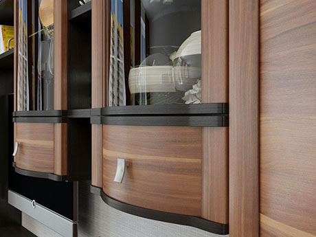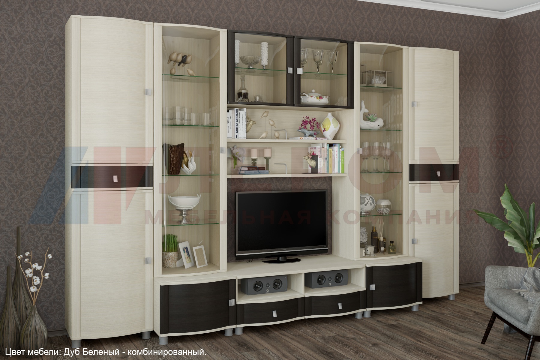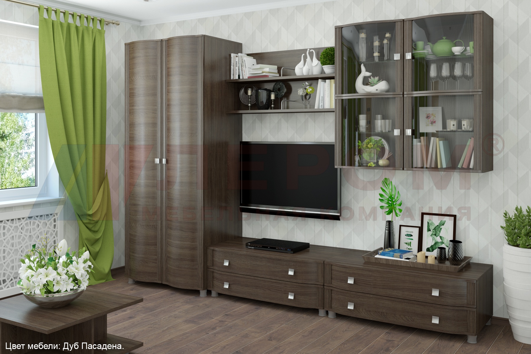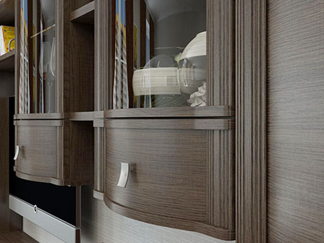 У "Оливии" сферические фасады, а в цвете "Дуб Сонома" и "Дуб Пасадена" еще и декоративные вертикальные элементы фасада. Изготавливается в различных цветах: Дуб Сонома, Дуб Пасадена, Дуб Венге, Беленый Дуб. А также, для многих секций есть варианты комбинирования фасадов, выдвижных ящиков и корпуса мебели: Дуб Венге - комбинированный, Дуб Венге - комбинированный, корпус Дуб Венге - фасад Слива Валлис.