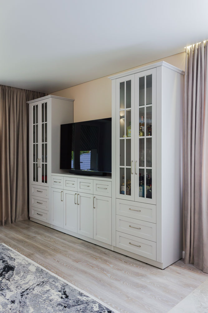 Благодаря большому разнообразию модулей, можно создать как строгий и сдержанный, почти классический интерьер, так и яркий, нарядный, современный. Модули с глянцевыми и стеклянными фасадами создадут эффект легкости и невесомости. Множество шкафов с опциями дополнительных полок и ящиков помогут организовать в доме порядок.