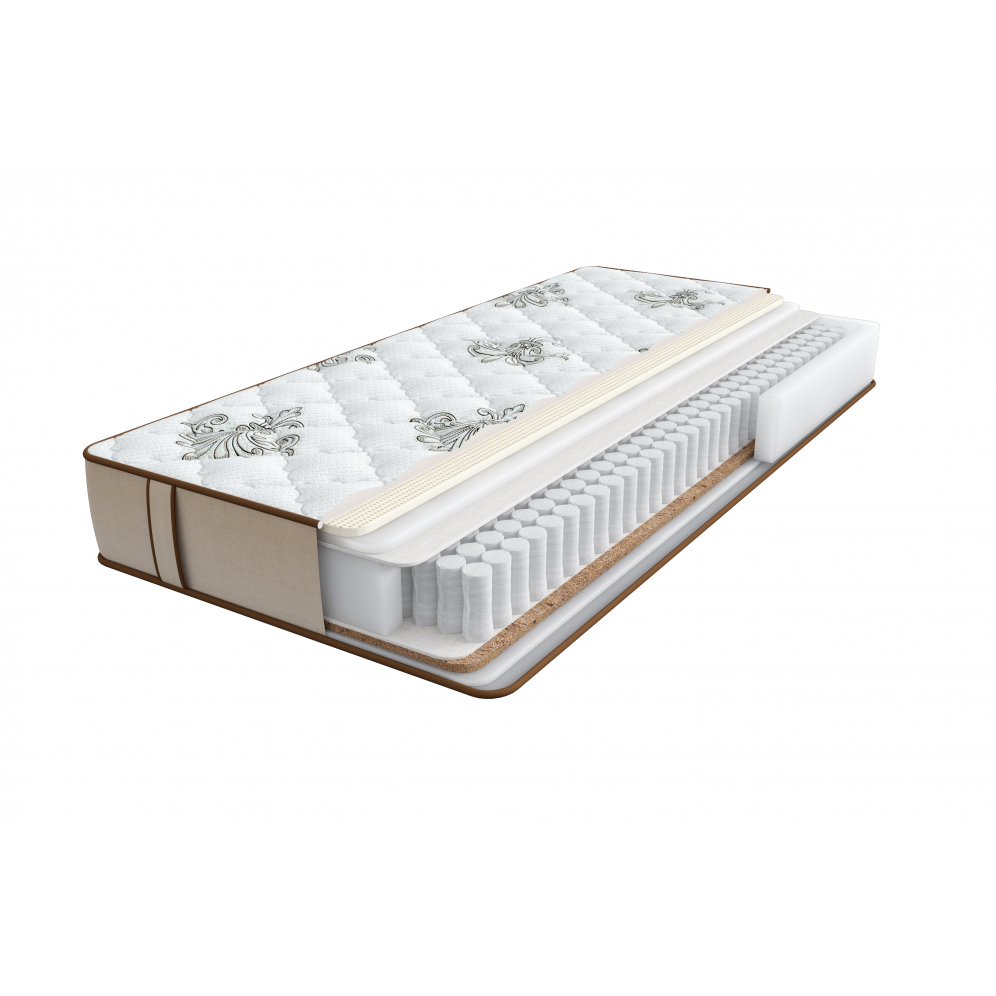 Верхняя сторона выполнена из двойного слоя натурального латекса 2 см , двойного слоя высокоэластичной пены Ortho Foam - 2 см, и льняного полотна