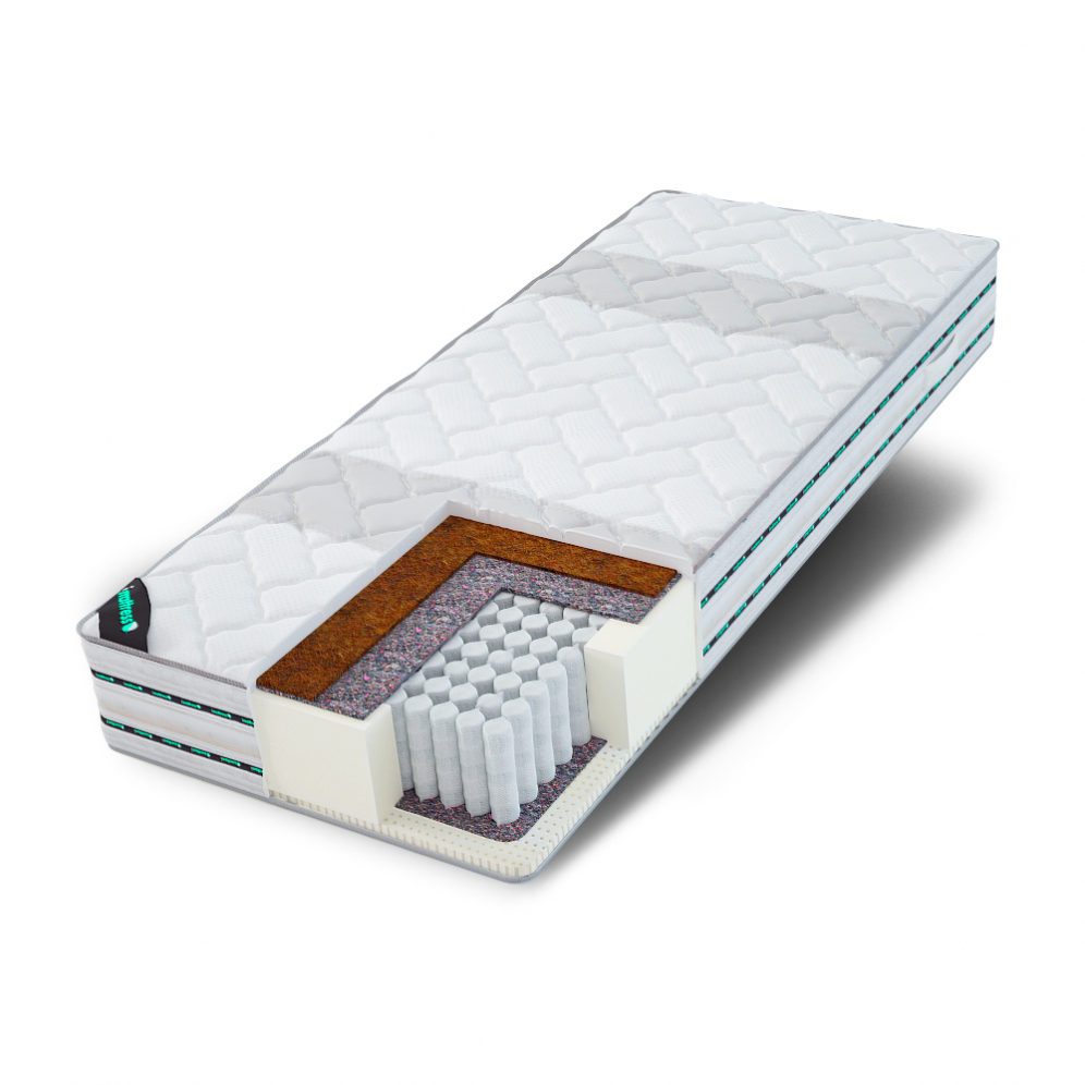 Матрас с различной жесткостью сторон. Мягкая сторона с натуральным латексом способствует влаго- и теплообмену - рекомендуется в качестве зимней стороны. Настил из кокоса уменьшает площадь касания тела и обеспечивает прекрасную вентиляцию в летний период.