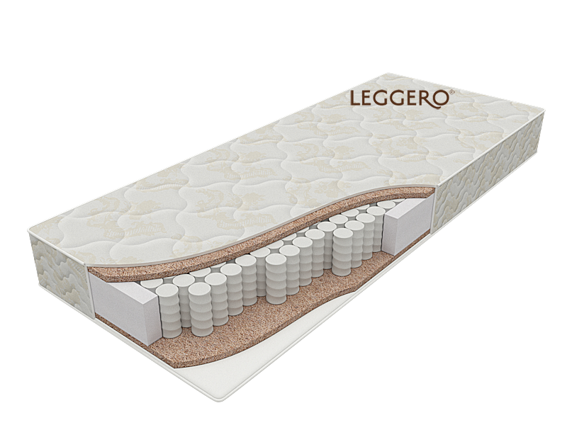 Жёсткий, упругий матрас отличается выраженным анатомическим эффектом и способностью выдерживать большие нагрузки за счёт 2-х сантиметрового слоя латексированной кокосовой койры с каждой из сторон в сочетании с усиленным пружинным блоком.