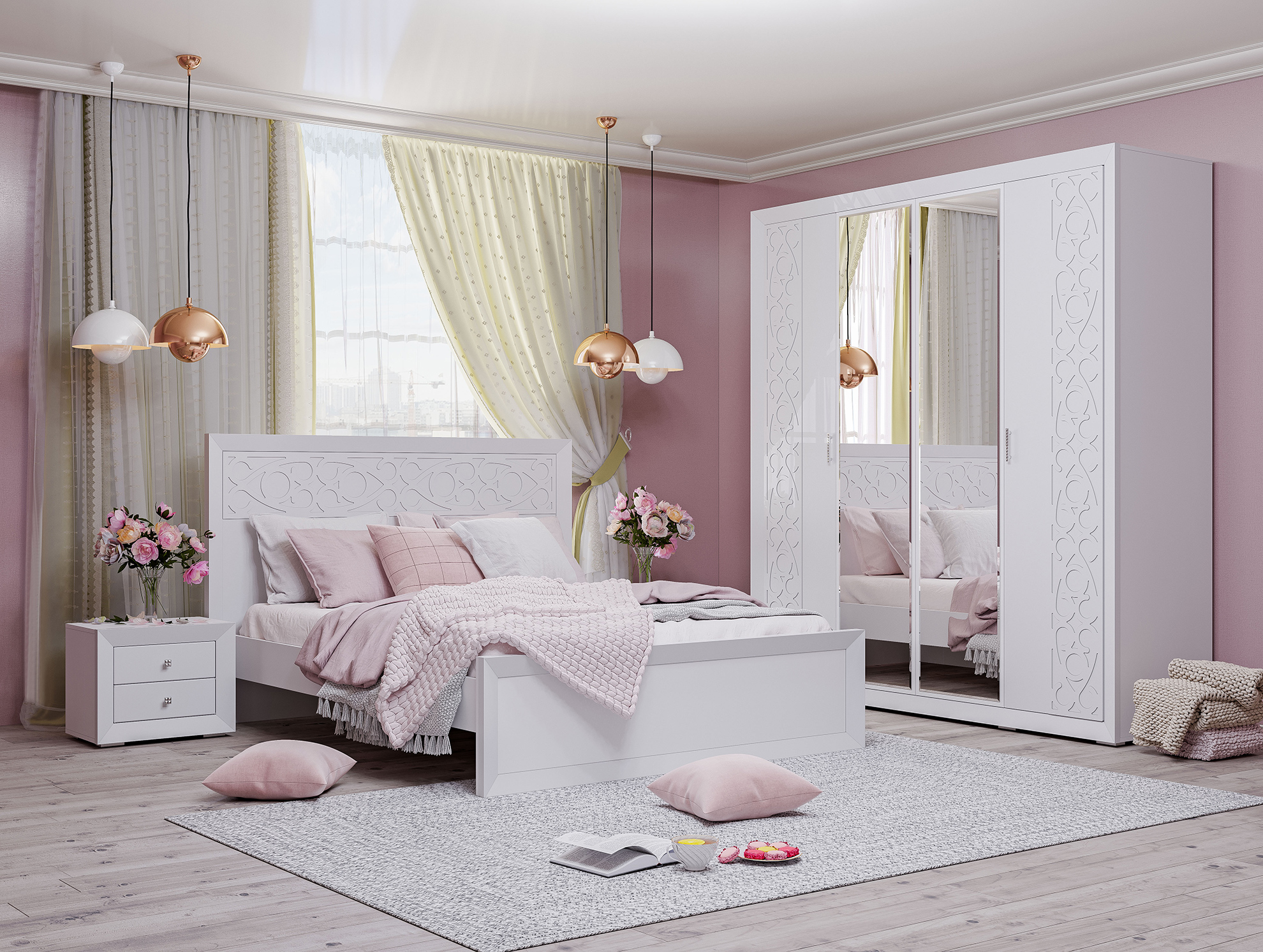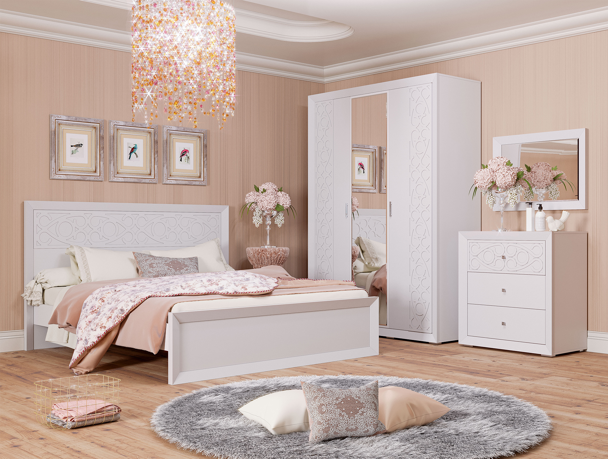 Спальня "Адель" в светлых тонах поможет создать нежный интерьер, который будет наполнен теплом и изысканной роскошной обстановкой. Уникальный растительный 3Д орнамент в стиле Прованс наделяет предметы этого комплекта неповторимым шармом и романтикой.