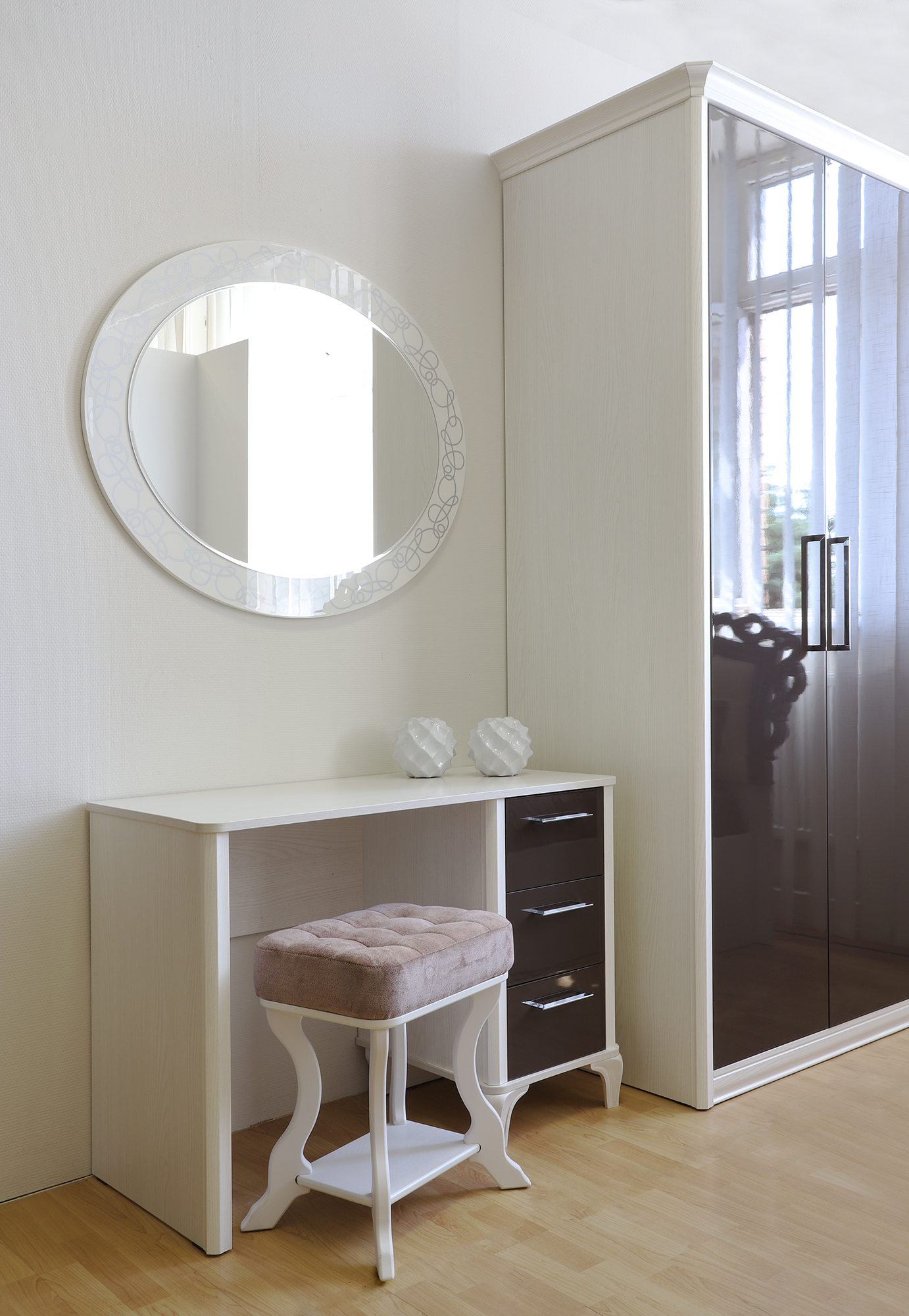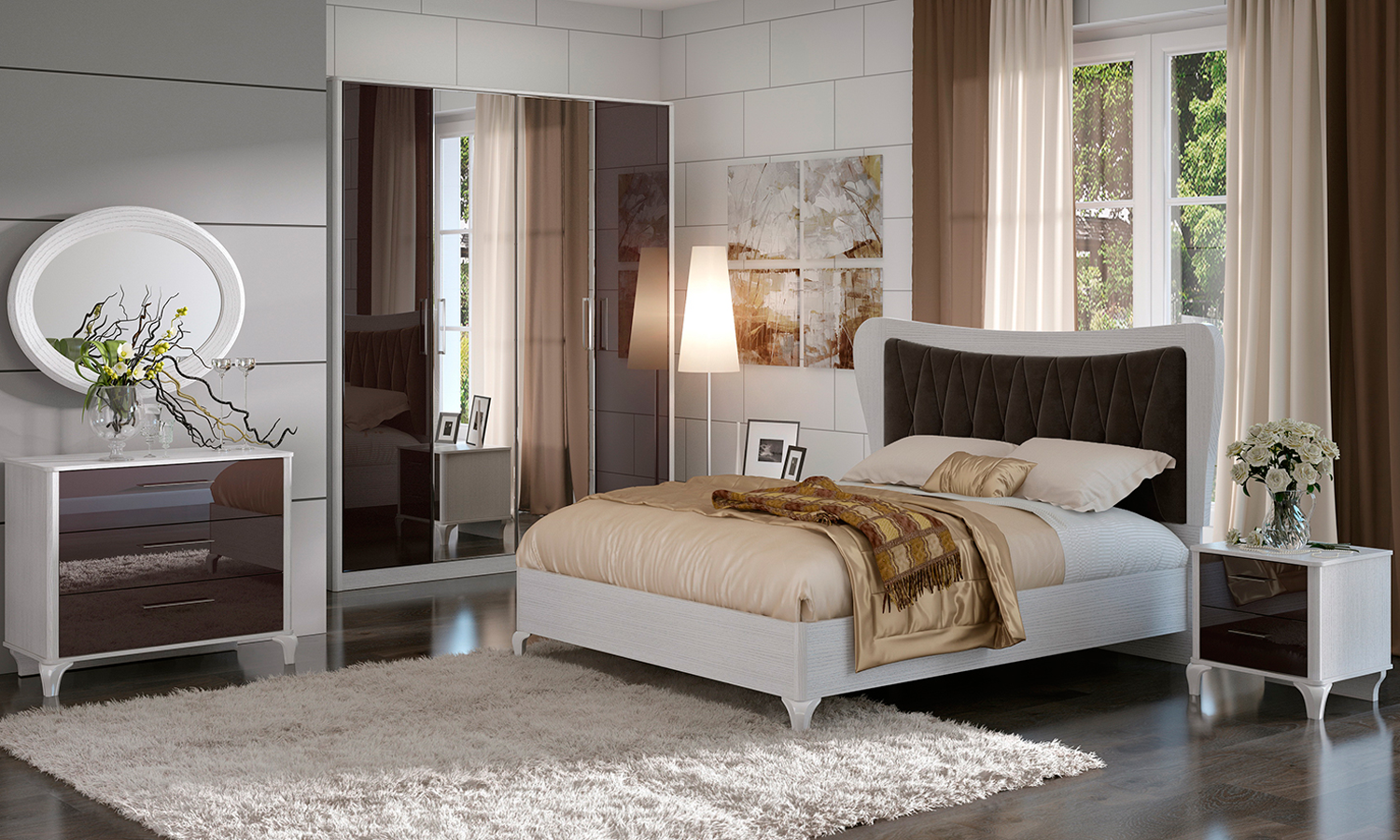 Спальни «Opera Шоколад» объединяют классику и современность. Их плавные линии, фигурные детали и сложный декор соответствуют традициям европейских мастеров. Но контрастная расцветка, зеркальный блеск фасадов и полированные металлические детали говорят об использовании новейших технологий. Такая мебель привлекает внимание необычным сочетанием оттенков — молочно-белые корпусы служат фоном для «шоколадных» панелей. Это решение оживляет интерьер, создавая ощущение теплоты и уюта. При работе над коллекцией специалисты МК «Шатура» уделили особое внимание надежности. В ней используются направляющие и петли европейского производства, рассчитанные на долгие годы безупречной службы. При необходимости их можно укомплектовать доводчиками, позволяющими плавно закрывать дверцы и ящики.