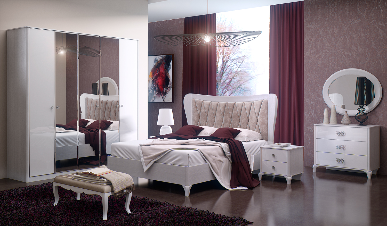 Спальни Opera — это современное переосмысление классического стиля. Изящные плавные линии, сложный декор и неповторимое оформление фурнитуры связывают ее с модерном и барокко. Но глянцевые фасады мебели и сверкающие металлические детали — несомненное влияние хай-тека. Благодаря этому коллекция будет уместной практически во всех интерьерах. Высокие технологии проявляются не только в дизайне. МК «Шатура» использует направляющие и петли немецкой компании Hettich. Они выдерживают большие нагрузки, обеспечивая плавное открывание дверец и ящиков в течение долгих лет.