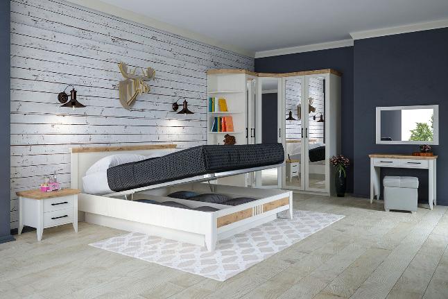 Данная коллекция мебели для спальни выполнена в элегантном стиле "Прованс". Гармоничное цветовое сочетание светлого декора Валенсия с мягким древесным оттенком Дуб Бунратти на профилях и крышках в комбинации с элегантными черными матовыми ручками придает незабываемый шарм мебели. Фигурные буковые опоры, окрашены кремовой эмалью, дополняют и подчеркивают общее стилистическое решение спальни.
