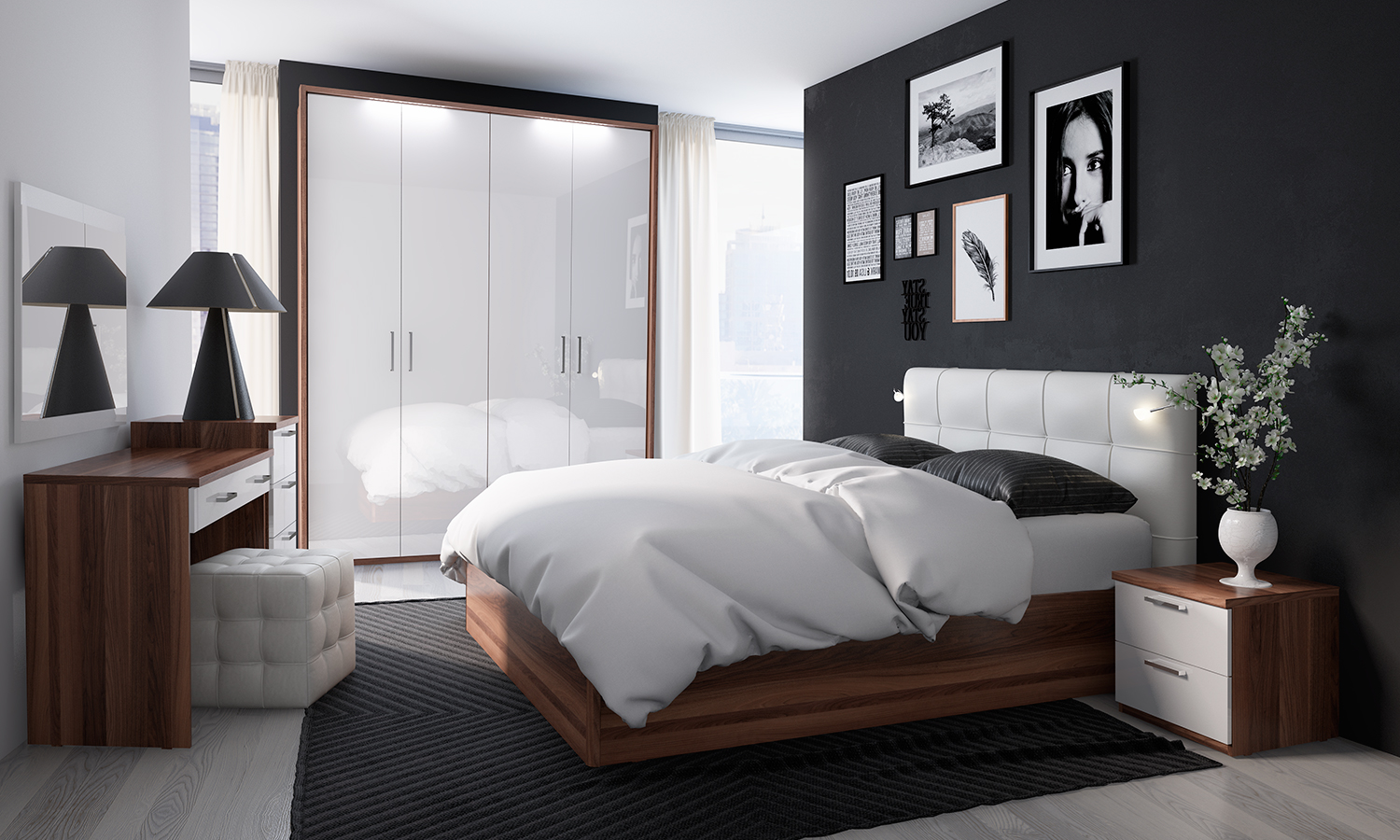 Спальня Rimini Bosco — это воплощение классического европейского интерьера. Ее глянцевые белые фасады символизируют непринужденность Средиземноморья, а темный корпус — строгость центральной части континента. В ней используется оригинальная текстура Rumford, которая точно повторяет контрастный рисунок натуральной древесины ореха. Минималистическое оформление делает мебельный гарнитур совместимым с самыми разными стилями отделки интерьеров, включая прованс, умеренный хай-тек, ар-деко и лофт. При его производстве используются только качественные материалы — прочные и долговечные.