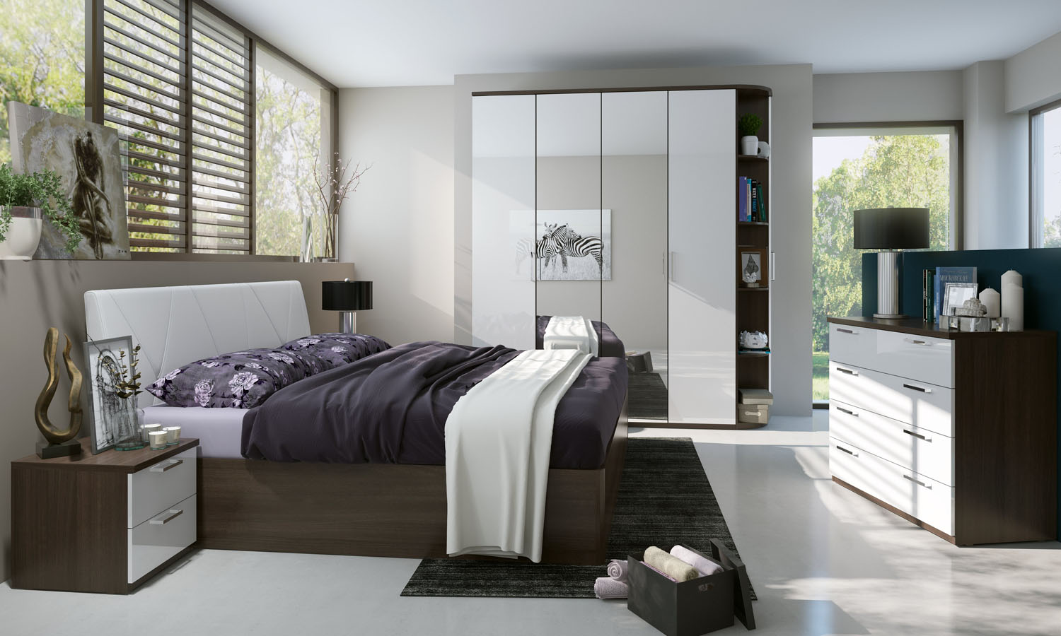 Спальня Rimini Domino — это необычное сочетание классики и авангарда. Лаконичное оформление мебели служит отличным фоном для демонстрации главного преимущества — необычной цветовой гаммы. Темные корпусы, стилизованные под натуральную древесину, дополнены глянцевыми белыми фасадами. Такое дизайнерское решение создает ощущение солидности и респектабельности. Вместе с тем она сохраняет легкость и непринужденность, которые делают отдых действительно комфортным.