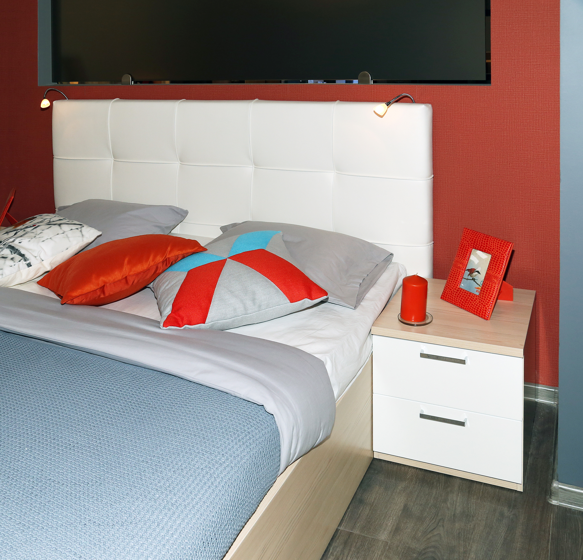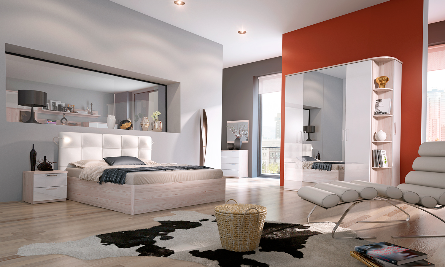 Спальня Rimini Ice вызывает ощущение чистоты и свежести. И неспроста — при ее создании итальянские дизайнеры вдохновлялись белоснежными вершинами гор. Глянцевые фасады визуально расширяют помещение, что особенно важно для малогабаритных квартир. Днем они наполняют комнату множеством бликов, делая игру света и тени главным украшением интерьера. Корпусы мебельного гарнитура соответствуют всем современным требованиям, включая прочность и долговечность. Кроме того, они очень красивы — уникальная текстура Katthult точно воспроизводит оттенок и рельефный рисунок натуральной древесины хвойных пород.