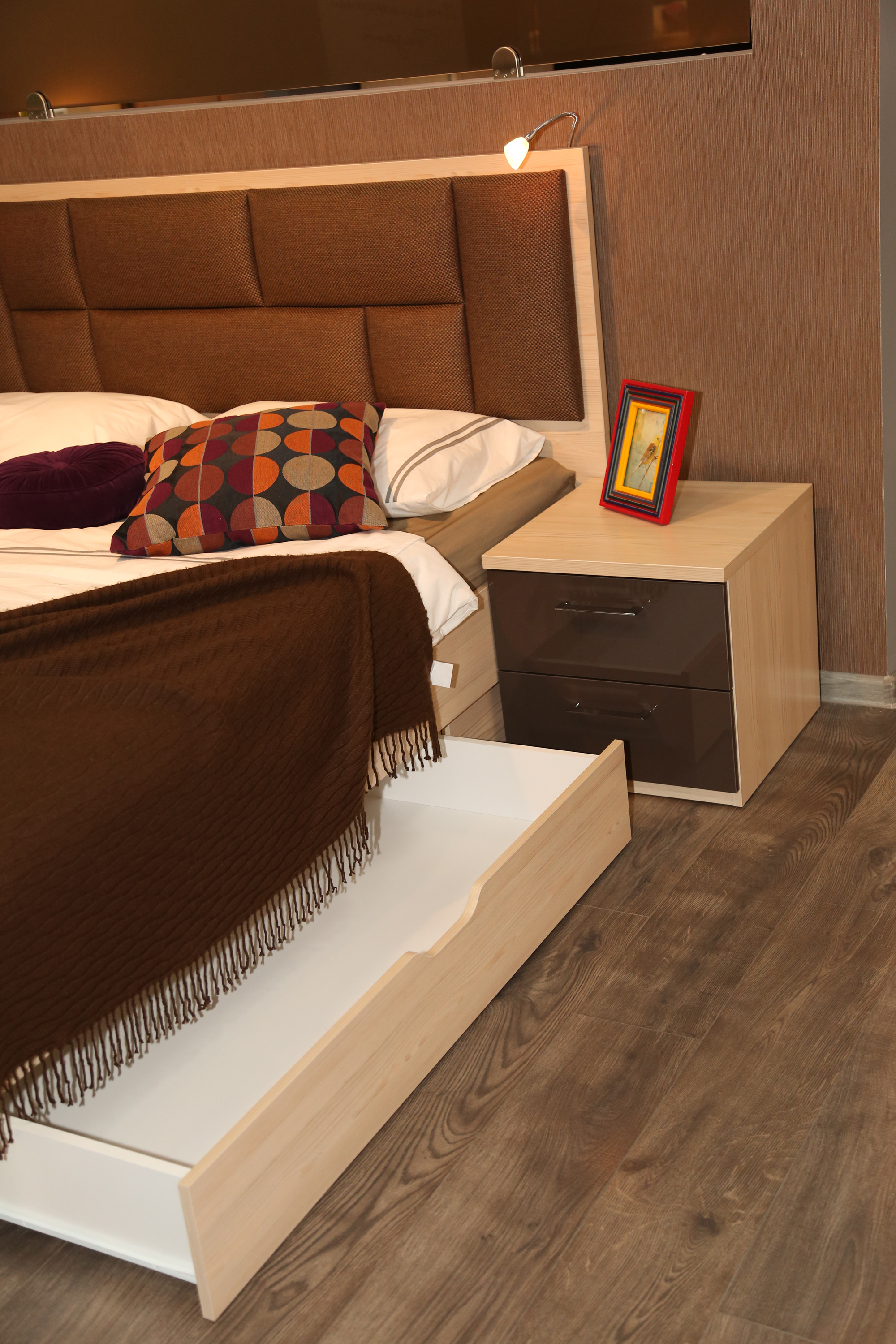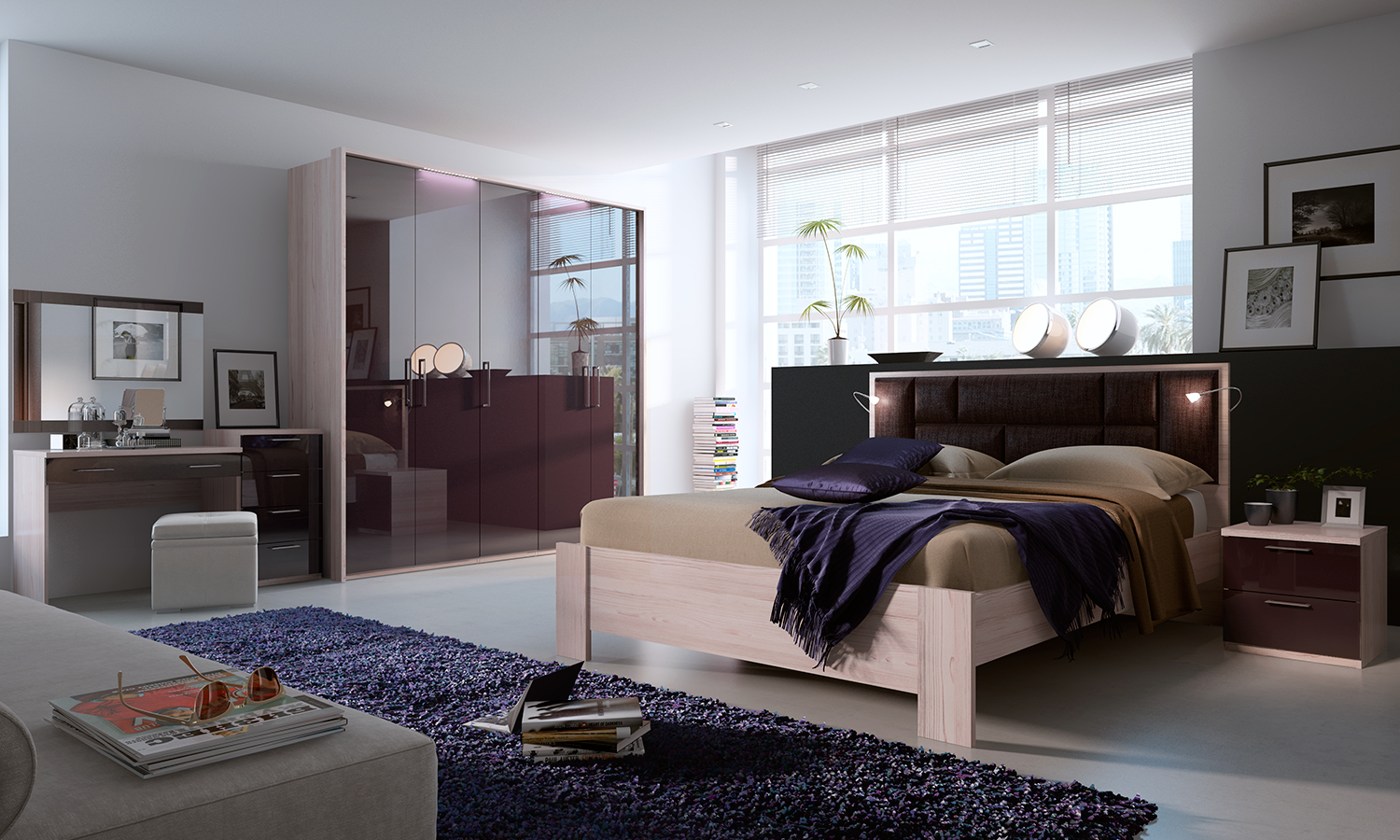 Спальня Rimini Mokko — уникальный мебельный гарнитур, который поможет создать действительно комфортную обстановку. Она лишена броского декора и сложных резных деталей, ведь ее главным украшением служат глянцевые шоколадные фасады. Глубокий цвет превосходно сочетается с ярким блеском. Он визуально расширяет помещение, что особенно важно для малогабаритных квартир. Ощущение простора усиливается светлыми корпусами, в точности повторяющими оттенок и естественный рисунок хвойной древесины. Такое необычное сочетание цветов отлично смотрится как в классическом, так и в авангардном окружении.