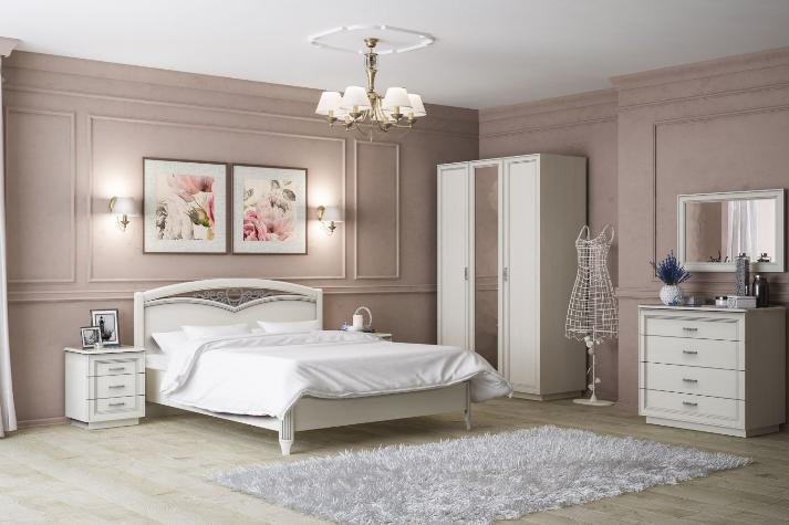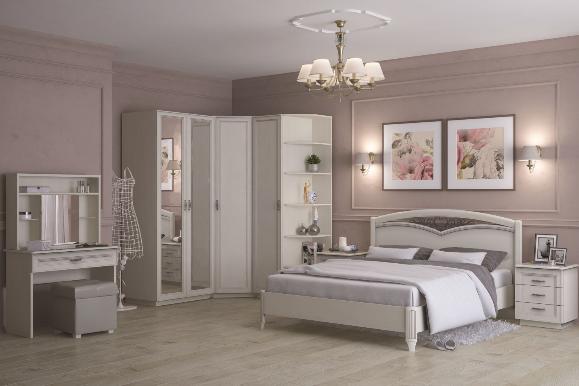 Изысканная, наполненная светом спальня "Валенсия" выполнена в неоклассическом стиле. Благодаря широкому модульному ряду вы легко составите функциональную и индивидуальную композицию. Дизайнерские особенности коллекции: стильные рамочные фасады с серебряной патиной, изящные резные элементы кровати, элегантные ручки в отделке под состаренное серебро.